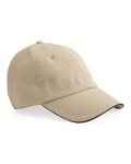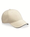 USA-made, pre-curved contrast color sandwich visor gives this six-panel structured cap a two-tone look.
