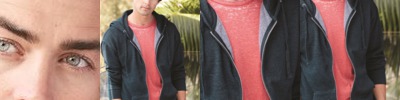 - Two-ply hood with rib trim, contrast color liner and drawcord