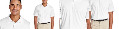 100% polyester mesh piqué • 4.4 oz. • moisture-wicking • UV protection • pill-resistant • fully taped flat rib-knit collar • half-moon patch • 3-button placket with dyed-to-match buttons • double-needle flat-lock stitching at shoulders • armholes • sleeves and bottom hem • 2" side vents • tagless • Sizes: S-4XL