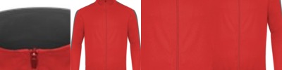 - Self-fabric collar with full length locking zipper Two front zipper pockets with headset opening