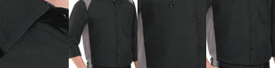 - Contrast shoulders, side panels and inner collar band