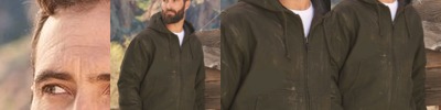 - Attached three-piece hood with drawcord