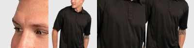 100% polyester wicking knit * Wicks moisture * Tagless label * Asymmetrical contrast color yoke