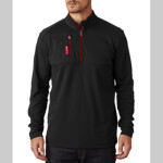 | Description: Maximize motion with this sleek, sueded 1/4-zip with moisture-wicking abilities. | |